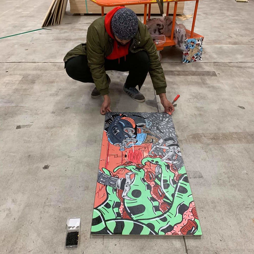 Aise has done over 90 murals, 100+ canvas paintings, 4 solo art shows, curated a successful art clash via my brand @invadeyouall, designs for various skateboarding brands, music artists and labels and participated in over 50 group art shows.