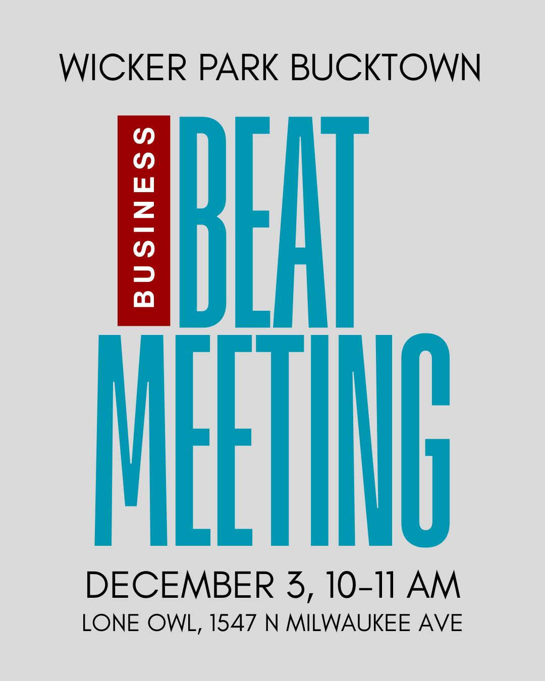 Join us for our upcoming Wicker Park Bucktown Business Beat Meeting, where local business owners, community partners, and neighborhood leaders come together to share updates, address emerging challenges, and collaborate on opportunities that strengthen our commercial corridors.