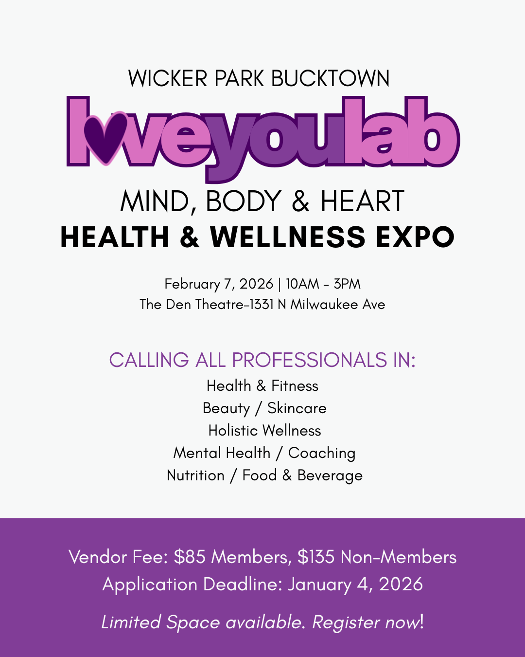 Join us this February for Love You Lab, a vibrant health and wellness experience designed to inspire self-care, self-love, and holistic well-being. Explore a curated marketplace featuring incredible wellness vendors, enjoy rejuvenating classes, and immerse yourself in hands-on experiences that nourish your whole self.