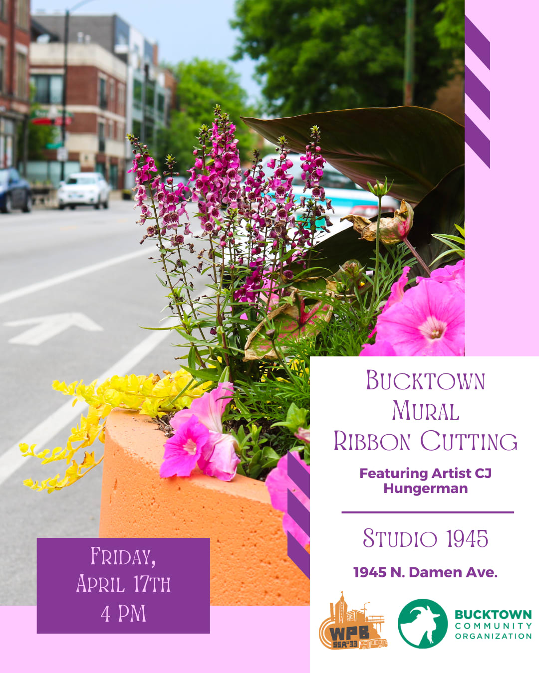 Join us on April 17th from 4-5 PM at Studio 1945 (1945 N Damen Ave) as we welcome the newest piece of public art to the Bucktown neighborhood!