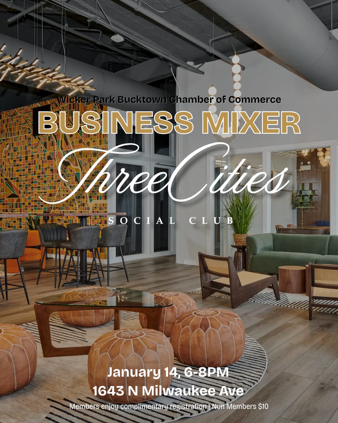 Support, Partner, and Connect with businesses from Wicker Park Bucktown and beyond at Three Cities Social Club Enjoy light bites and complimentary drinks as you mix and mingle with WPB businesses and beyond.